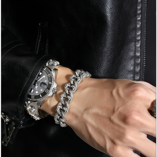 Drakar - Serpent Clasp Silver Cuban Bracelet