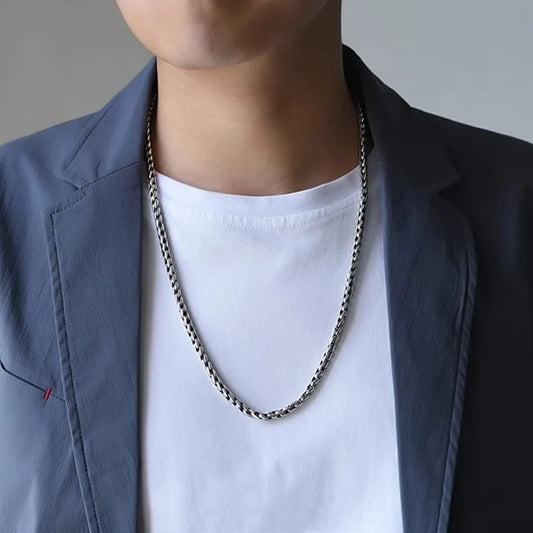 Hirvon - V-Shaped Weave Silver Chain Necklace