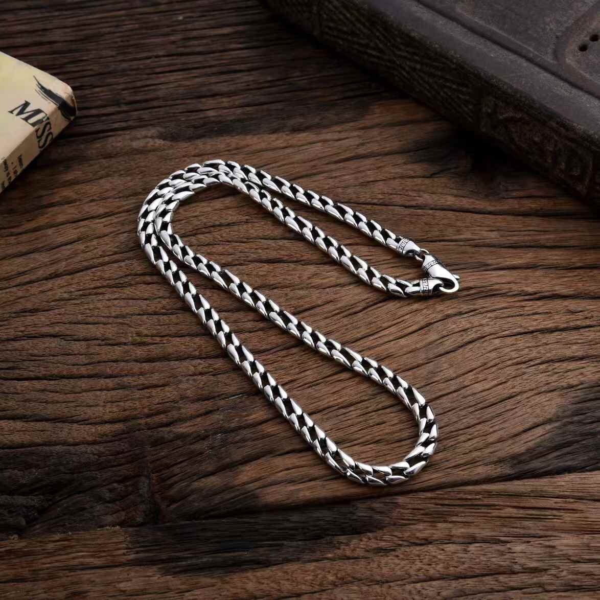 The Vexor Silver Necklace is a striking statement piece for the modern man. Handcrafted from 925 sterling silver, this necklace features a 7mm wide smooth link design with a vintage-inspired pattern. The bold chain offers both elegance and durability, making it ideal for everyday wear or special occasions. Whether worn as a standout accessory or layered with other pieces, the Vexor Necklace delivers a timeless look with a rugged edge. Designed for those who appreciate premium craftsmanship, this necklace is built to last and create a lasting impression.